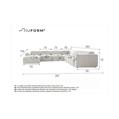 Kampinė sofa kreminės spalvos (su dešiniuoju kampu/„U“ formos) Flex Felix – Miuform