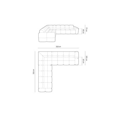 Su dešiniuoju kampu/su kairiuoju kampu/„L“ formos, pilkos spalvos, kito dydžio, plotis 310 cm