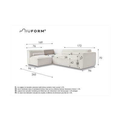 Kampinė sofa kreminės spalvos (su kairiuoju kampu) Flex Felix – Miuform