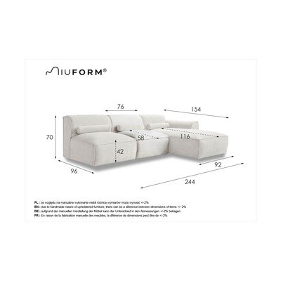 Kampinė sofa baltos spalvos (su dešiniuoju kampu) Flex Felix – Miuform