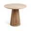 Kave Home apvalus valgomojo stalas Jeanette. Jis išsiskiria autentiška išvaizda dėl matomos medienos tekstūros ir tamsios apdailos.