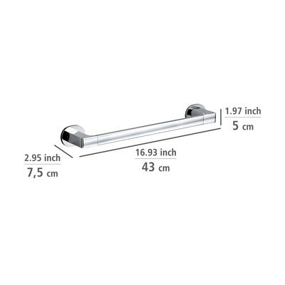 Rankšluosčio laikiklis MariborSu montavimu be gręžimo, su UV-Loc tvirtinimu, iš nerūdijančio plieno, blizgios sidabrinės spalvos, 43,5x7,5 cm, aukštis 5 cm