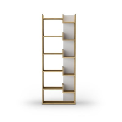 Knygų spinta KlapoIš ąžuolo, iš MDF plokštės, paviršiaus apdaila: Melaminas, baltos spalvos/natūralios spalvos, plotis 60,5 cm, aukštis 162 cm, gylis 22 cm