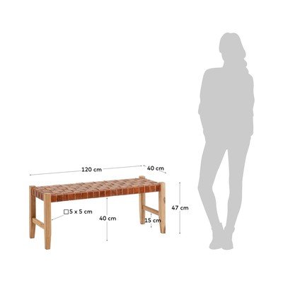 Iš odos, medžio masyvo, konjako rudos spalvos/natūralios spalvos, plotis 120 cm, gylis 40 cm, aukštis 47 cm