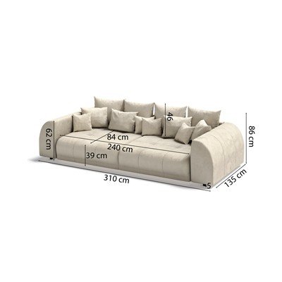 Kreminės spalvos iš kordinio velveto sofa 310 cm Vanessa – Ropez