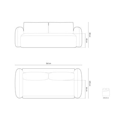 Iš šenilinio audinio, sulankstoma/su sandėliavimo vieta, kreminės spalvos, trivietė, plotis 262 cm, gylis 105 cm, sėdynės gylis 66 cm