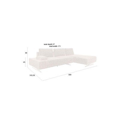 Su dešiniuoju kampuKreminės spalvosKeturvietėPlotis 308 cmGylis 183,5 cmSėdynės gylis 57 cm