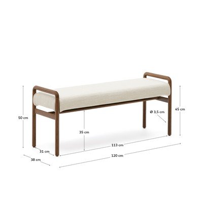 Iš šenilinio audinio, medžio masyvo/paminkštinto audinio, kreminės spalvos/natūralios spalvos, plotis 120 cm, gylis 38 cm, aukštis 50 cm