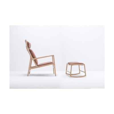 Krėslas DedoAustas/medinis, iš odos, konjako rudos spalvos