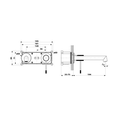 Šis dviejų elementų žalvarinis maišytuvas ypač tinka prie praustuvų, kuriuose nėra skylės maišytuvui įmontuoti. Jis turi 25 mm skersmens kartelę.