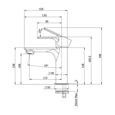 Papildykite savo praustuvą šiuo minimalistiniu žalvariniu svirtiniu maišytuvu. Jame sumontuota 25 mm skersmens kasetė. Be to, pakuotėje rasite lanksčią tiekimo žarną.