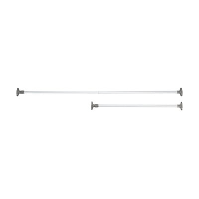 Praktiškas metalinis strypas, pagamintas iš ištraukiamų vamzdelių su plastikiniais galais.