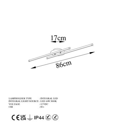 LED, iš metalo, juodos spalvos, 10x86 cm, aukštis 5 cm