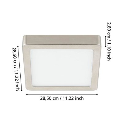 LED, su plastikiniu gaubtu, iš metalo/iš plastiko, pilkos spalvos, 28,5x28,5 cm, aukštis 3 cm