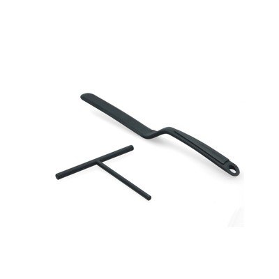 Rinkinį sudaro du praktiški įrankiai. Pirmasis - 14 cm pločio T formos mentelė, kuria lengva tolygiai paskirstyti tešlą ant keptuvės. Antroji - ilgas praktiškas lenktas apverstuvas, kuriuo lengva apversti ir patiekti blynus. Indai pagaminti iš silikono.
