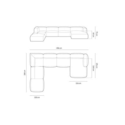 Dėl modulinės konstrukcijos sofą lengvai pritaikysite pagal savo poreikius. Taip pat galima įsigyti pasirinktinai įmontuojamą šoninį staliuką ir pagalvėles, kurios suteikia papildomą atramą ir užbaigia bendrą išvaizdą. Tiesą sakant, pagalvėlės į komplektą neįeina.