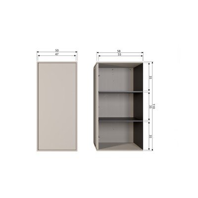 Modulinė spinta DailyIš pušies masyvo, paviršiaus apdaila: spalvotas, su matiniu paviršiumi, kreminės spalvos, plotis 50 cm, aukštis 110 cm, gylis 58 cm