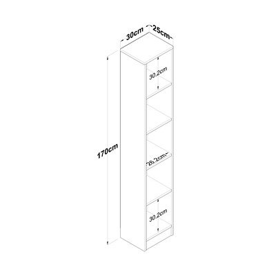 Iš riešutmedžio, iš MDF plokštės, paviršiaus apdaila: Melaminas, natūralios spalvos, plotis 30 cm, aukštis 170 cm, gylis 25 cm