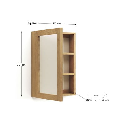 Vonios daiktadėžė PlubiaPakabinama/su veidrodžiu, iš tikmedžio masyvo, paviršiaus apdaila: lakuotas, natūralios spalvos, plotis 50 cm, aukštis 70 cm, gylis 14 cm