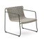 Kave Home sodo krėslas Maurina. Rankomis pintas virvių apmušalas atsparus UV spinduliams, o cinkuota plieninė konstrukcija – korozijai. Tai garantuoja visišką tinkamumą naudoti lauke.