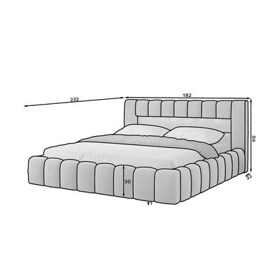 Verta žinoti: lentyna lovos galvūgalyje yra 19 cm aukščio ir 20 cm gylio, tačiau dėl minkštų kraštų matmenys gali skirtis iki 2 cm.