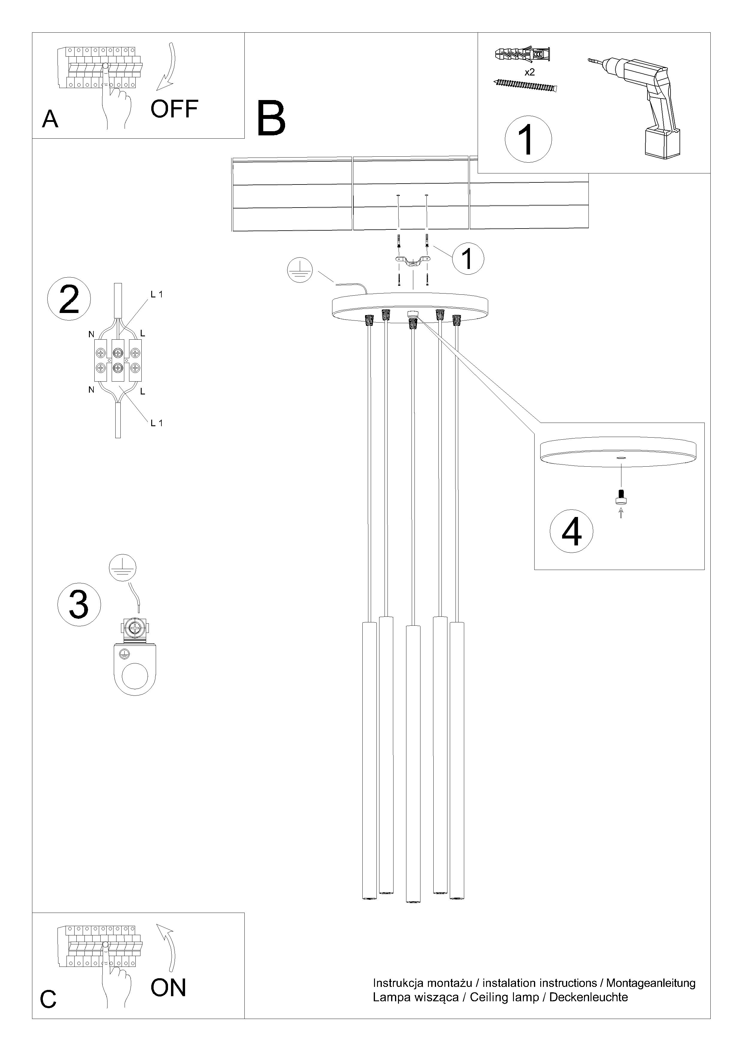 Pakabinamas šviestuvas Fideus iš Sollux. Keli betoniniai cilindrai sukuria įspūdingą šviesos instaliaciją, kuri patraukia dėmesį iš karto.