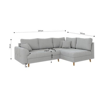 Iš kordinio velveto, su dešiniuoju kampu/„L“ formos, pilkos spalvos, trivietė, plotis 231 cm