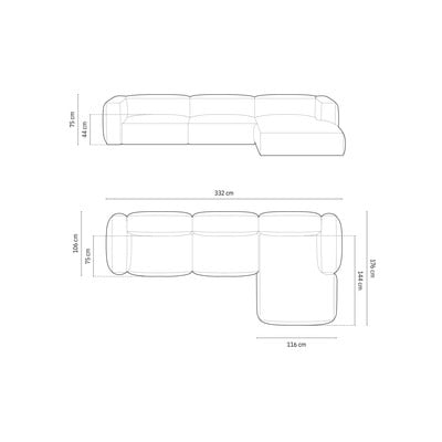 Dėl modulinės konstrukcijos sofą lengvai pritaikysite pagal savo poreikius. Taip pat galima įsigyti pasirinktinai įmontuojamą šoninį staliuką ir pagalvėles, kurios suteikia papildomą atramą ir užbaigia bendrą išvaizdą. Tiesą sakant, pagalvėlės į komplektą neįeina.