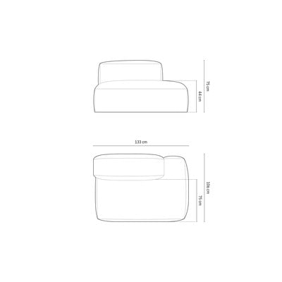 Modulinė sofos dalis MartinaSu dešiniuoju kampu, iš velveto, pilkos spalvos, tinka augintiniams, plotis 133 cm, gylis 106 cm