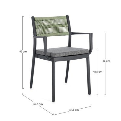 Bizzotto sodo kėdė "Alvin" - tai modernaus dizaino ir patogumo derinys. Kėdė pagaminta iš patvaraus plastiko ir yra elegantiškos pilkos spalvos, todėl lengvai derinama su kitais sodo baldais. Kad būtų kuo patogiau, kėdė turi porankius ir nuimamą pilkos spalvos pagalvėlę.