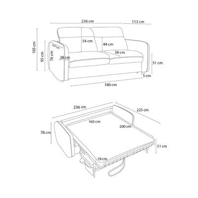 Miegojimui/reguliuojama/sulankstoma, pilkos spalvos, trivietė, plotis 236 cm