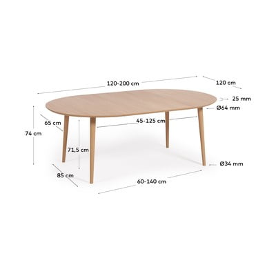 Prailginamas valgomojo stalas natūralios spalvos iš ąžuolo ø 120 cm Oqui – Kave Home