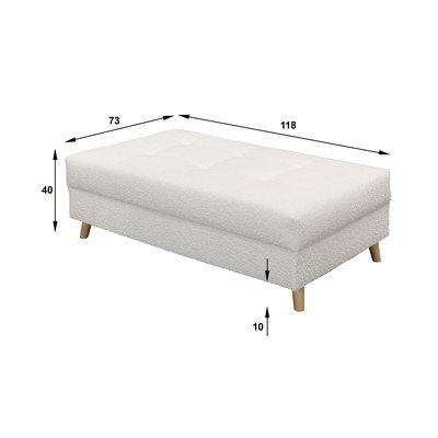 Iš boucle, baltos spalvos, plotis 118 cm, gylis 73 cm, aukštis 40 cm
