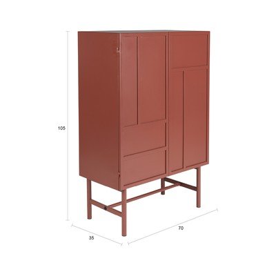 Iš metalo, paviršiaus apdaila: miltelinis dažymas, raudonos spalvos, plotis 70 cm, aukštis 105 cm, gylis 35 cm