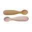 "Cam Cam Copenhagen" kūdikių šaukšteliai "Coral Mix", dviejų dalių rinkinys, pagaminti iš silikono. Ergonomiška rankena ir trys taškeliai ant galiuko apsaugo nuo atpylimo ir palengvina maitinimą.