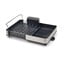 Integruotas nutekėjimo kamštis su pasukamu snapeliu išleidžia vandenį tiesiai į kriauklę arba galite leisti jam susikaupti ir išpilti vėliau. Pagrindo paviršius su plieniniais laikikliais tinka visų tipų indams, įskaitant stiklines, o išplečiamas plokščias paviršius idealiai tinka puodeliams ir dubenėliams nusausinti. Dėl lankstaus, nuimamo stalo įrankių nusausintuvo lengva organizuoti darbą.
