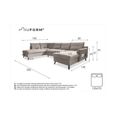 Iš velvetoSulankstoma/su sandėliavimo vietaSu kairiuoju kampu/„U“ formosAtsparus vandeniui/tinka augintiniamsRožinės spalvosKito dydžioPlotis 300 cmGylis 198 cmSėdynės gylis 54 cm