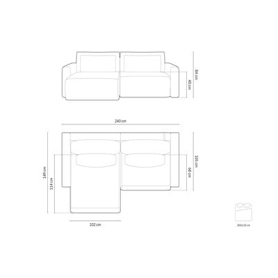 Kampinė sofa BelfastSulankstoma/su sandėliavimo vieta, su dešiniuoju kampu/su kairiuoju kampu/kintama/su gultu, rožinės spalvos, trivietė, plotis 240 cm