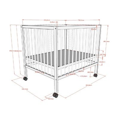 Baltos spalvos iš buko masyvo maniežas vaikams reguliuojamas aukštis/ant ratukų 95x75 cm Dino – Vipack