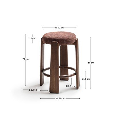 Iš uosio masyvoIš šeniloRudos spalvos/tamsios natūralios spalvosSėdynės aukštis 75 cm