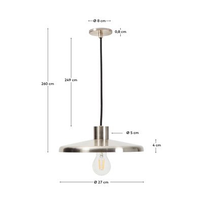 Nuvira pakabinama lempa iš Kave Home. Elegantiškas ir funkcionalus dizainas su šlifuoto plieno konstrukcija lengvai prižiūrimas dėl pirštų atspaudams atsparaus paviršiaus.