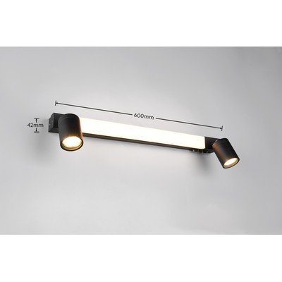 Sieninė lempa EnricoLED, iš metalo, matinės juodos spalvos, 6x60 cm, aukštis 18 cm