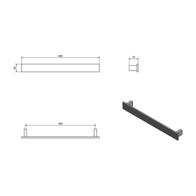 Sieninis, matinės juodos spalvos, 60x7 cm, aukštis 6 cm