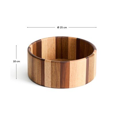 Šis dubuo sukurtas taip, kad būtų ne tik funkcionalus, bet ir dekoratyvus elementas. Dėl savo dryžuoto rašto, sukurto iš skirtingų medienos rūšių, jis puikiai tinka tiek virtuvei, tiek valgomajam, kur pasitarnaus patiekalams patiekti arba kaip stilinga puošmena.