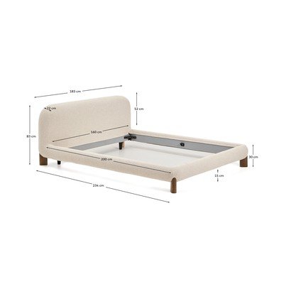Kave Home Odina dvigulė lova pasižymi šiuolaikine elegancija. Jos užapvalintas dizainas, sklandžiai pereinantis nuo konstrukcijos prie galvūgalio ir kojų, kartu su buklė audinio apmušalu, sukuria švelnų ir jaukų siluetą.