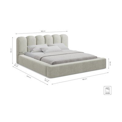 140x200 cm, su sandėliavimo vieta, su lovos grotelėmis, audiniu dengta, smėlio spalvos