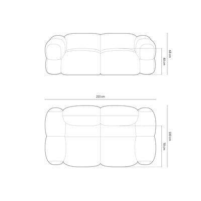 Iš velveto, smėlio spalvos, dvivietė, plotis 210 cm, gylis 100 cm, sėdynės gylis 70 cm