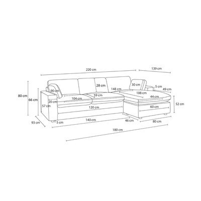 Su dešiniuoju kampu/su kairiuoju kampu/kintama/su gultu, smėlio spalvos, trivietė, plotis 220 cm