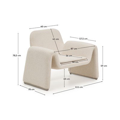 Kave Home Melvia smėlio spalvos krėslas išsiskiria kruopščiu dizainu, kurį išskirtinai sukūrė Mortenas Georgsenas. Jo šenilinis apmušalas su išraiškinga struktūra ir 3D efektu yra labai švelnus liesti ir suteikia apgaubiantį komfortą.