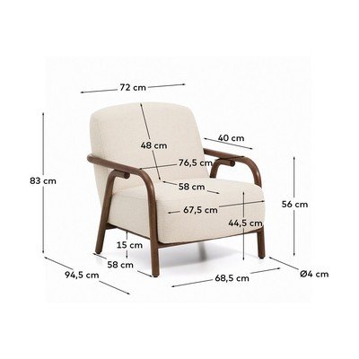 Sylo fotelis iš Kave Home. Išsiskiria apvalia masyvinės uosio medienos konstrukcija ir minkšta, vandeniui atspari apdaila, užtikrinanti lengvą priežiūrą.
